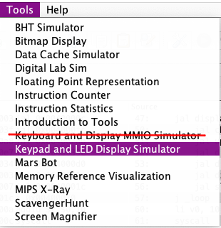 In MARS, go to to Tools > Keypad and LED Display Simulator. Not Keyboard and Display MMIO Simulator. This will pop up a window. Click the “Connect to MIPS” button in the bottom left.